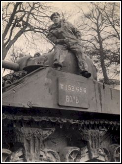 I joined active service in Holland as Troop Commander for "B" Squadron of the Sherbrooke Fusiliers, which meant I had four tanks under my command each with its own name starting with the letter "B" - Barbara, Be Good, Bohunk, and my personal tank "Bomb". The tank Bomb and the Sherbrooke Fusiliers fought in every major battle in the campaign through France, Belgium, Holland and Germany, even against Hitler's dreaded "SS" squad.